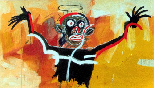 巴斯奎特是二战后美国涂鸦艺术家,新艺术的代表人物之一。巴斯奎特的涂鸦作品经常把各种符号、文字放到画面上,看起来像即兴创作的作品,但是他作为生活在白人世界的黑人艺术家,在这些涂鸦绘画和文字的背后是他的冷静思考,表达了某种神秘性,好像在传达一种宗教感和无处不在的政治,但同时也缺少直接指向性,观众可以感受到他生活中的矛盾心理。