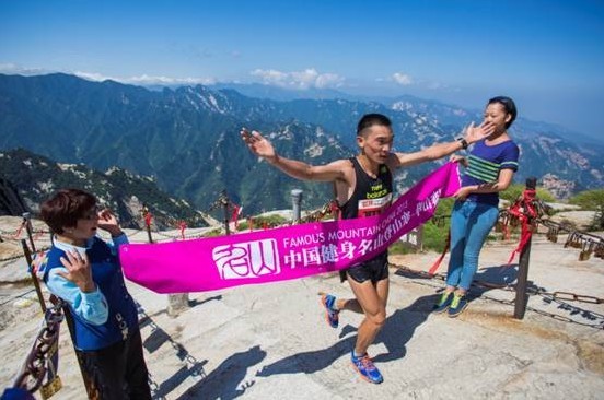 华山赛区男子竞速组冠军李子成到达终点