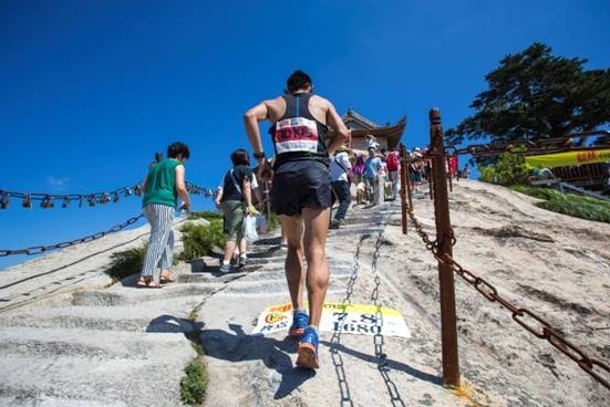 在超过1200人的参赛运动员中,既有跟随名山赛征战全国的专业运动员,也有生活在华山当地的普通百姓和全国慕名而来的户外运动爱好者。虽然比赛道路狭窄崎岖,很多地方的台阶甚至不足半个脚掌宽,但在流汗的脸上,我们可以读到挑战自我的毅力和运动的快乐。沿途的游客成了比赛最好的观众和协作员,他们为运动员让路和加油,也不知不觉成为了比赛的一部分。在比赛的特色活动“舌尖上的名山赛”环节,华山向大家展示了自己的特色美食小吃:甄糕、油糕、凉粉和饸饹。赛事还通过天安人寿支持的“户外安全讲堂”向群众普及山地户外运动的安全知识。户外运动的体验、华山奇险美景的享受、美食的诱惑、运动员的拼搏精神已经融合在一起,使得名山赛华山赛区的比赛真正成为了一个全民健身的大聚会。