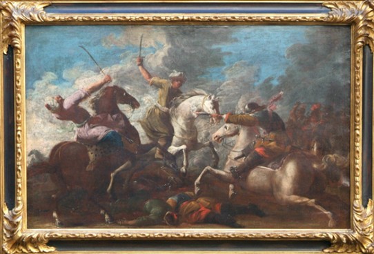 这幅由格奥尔格·菲利普·卢根达斯《骑兵的战争》的作品是由巴黎美爵艺术基金收藏并引入中国。这位深受乾隆皇帝喜爱的战役军事类型画家,一生大部分的时间都在创作战争类型绘画作品,他的九幅油画战争作品甚至被当作“样本”收藏于不伦瑞克美术馆(Brunswick Gallery),其余的作品很多都被保存于世界各地知名博物馆或美术馆内。格奥尔格·菲利普·卢根达斯一生创作的作品并不多,由于很多作品被各种艺术机构或私人收藏,《骑兵的战争》是为数不多的几幅仍在世面上流通的作品。因此,这幅作品首次现身中国艺术展时,便引来了众藏家强烈的拥泵,价格更是被一度抬至军事类型作品最高。对于这幅作品如此受捧的现象,一位资深藏家分析认为:“这幅作品的被拥泵很大程度上跟格奥尔格·菲利普·卢根达斯在战役军事类型画家中的知名度有关,而且他的战争类型的作品均是在激烈战场绘制,这更为这些作品增加了附加的价值,用价值连城形容也不为过。另一个很重要的原因就是在市面上流通的此类型的西方作品并不多,物以稀为贵也很正常。”