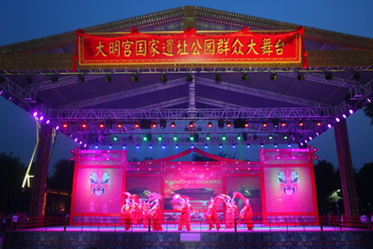 优越的地理位置,恢弘的地面遗址,多样的文物陈列,丰富的互动活动,如今的大明宫国家遗址公园已经成为广大游客及市民朋友感悟历史、体验考古、休闲娱乐的首选之地。为了进一步贯彻落实国家“文化惠民”政策,在2013年仲夏之际,大明宫国家遗址公园的消夏活动倾情启幕,旨在为广大游客及市民奉上一场全民参与、内容丰富的夏季群众文化盛宴,将文化惠民进行到底。