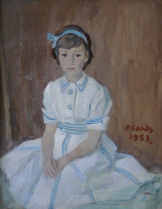 儿童的肖像画虽然看似简单,但能将孩子的童真绘制的活灵活现的画家却为数不多,其中孔蒂、雷诺阿可谓是首屈一指的人物肖像画家。普瑞莫·孔蒂曾经是一个拥有出色天才的神童,意大利野兽派唯一重要的画家,他同时还终止了一个关于早熟的天才的浪漫传奇。他的作品并不是单纯的在抒发一种拟古的情怀,而是一种充满了宁静,仿佛是与画中物品在进行放松的歌唱交流。在《女童肖像》中,孔蒂创作出了一张基于静止材料上的高质量快照画,其明媚,纯净的画面就好像光线从一开始就随着许多细碎的水晶降落,然后融化在了颜料里。在孔蒂的画作,呈现着色彩的永恒,画布上的蓝色、红色、绿色,几乎一直都是一样的,就仿佛色调和色彩组合都是同一个。著名的画家、批评家——乔万尼·康斯特里对孔蒂评价到:“他在颜色领域有着一种罕有的造诣,就像是贝壳的旋律,十分美丽。在灰色调里是最棒的。”