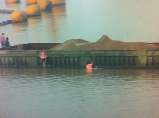 8月5日1640时,常州海事搜救中心值班人员在CCTV巡查中发现一艘船名为“豫信阳货XX”的船舶违规在常州水源地抛锚,并发现该船有人下水游泳,其中还包括儿童,值班人员立即通知海巡艇前往现场。