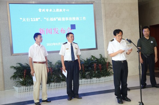 2013年8月13日10时30分,常州市水上搜救中心在常州海事局一楼大厅组织召开了“太行118”、“长福6”碰撞事故搜救工作新闻发布会,常州市电视台、常州日报、常州晚报、现代快报、人民网、中国常州网等主流媒体到场。