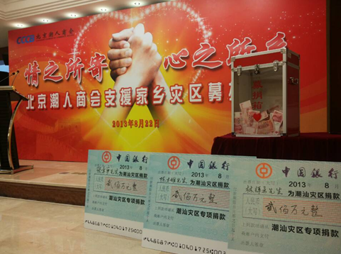 8•17潮汕遭遇50年不遇特大暴雨,练江告急!潮汕家乡的亲人告急!北京潮人商会得悉灾情之后即刻行动,组织捐款捐物援助受灾地区。北京潮人商会支援潮汕灾区募捐活动于8月22日在北京潮人商会会馆举行。
