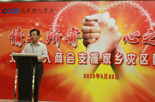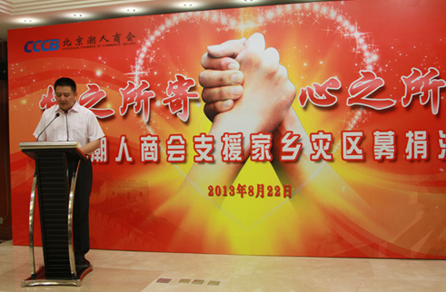 原海关总署副署长李克农在致辞中说,灾情发生后,北京潮人商会的行动很快,这充分体现了大家爱家乡、爱乡民的大爱情怀。天灾无情人有情,无论捐款多少都是为家乡尽了一份心!