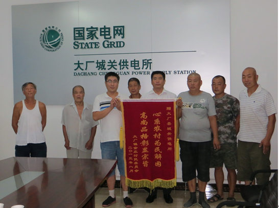 8月19日,夏日炎炎,酷热难耐,国网大厂县供电公司城关供电所会议室内凉风习习,欢声笑语。大厂镇金庄村党支部和村委会一行人专程送来一面锦旗,对该所在金庄村公共设施建设上提供的帮助表示感谢。