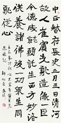 伊文琦来自黑龙江省大庆市,自幼受到优秀传统文化的熏陶,接受红色文化教育,成年后,在大庆市直属机关工作,历任市委秘书、市委办公室副主任、市文化局局长等职务。业余时间长期坚持研习书法,曾一度追随“康有为”,数年临习《石门铭》。近年来,从师于碑学名家李松先生,基于墓志、造像,勤于章草、书谱,孜孜以求,其作品体现出坚实的传统功力与鲜明的个人风貌,是近年来书法大军中涌现出的颇具潜力的代表作者之一。此次展览是伊文琦先生首次晋京展,展览共展出伊文琦先生精心创作的120余幅作品,集中代表了他最高的创作水平及实力。