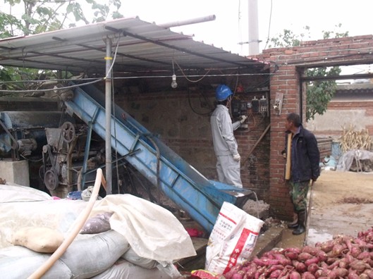 炮石岭沟村由于地理环境所致,主要农作物是白薯,平均每家都有5、6亩地之多,一年的收入全部靠将白薯加工成淀粉卖钱。平时用电量月均10000度左右,可到了淀粉加工期,用电量就得翻上2-3倍。该村原来由于变压器容量小,线路不合理,村民在地里收了一天的白薯,到家后还要分班排点轮流作业,严重影响了白薯淀粉的正常加工,群众对此反应比较大。