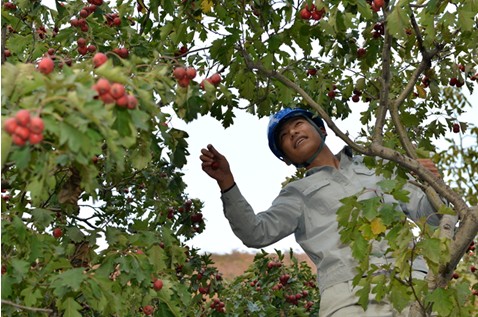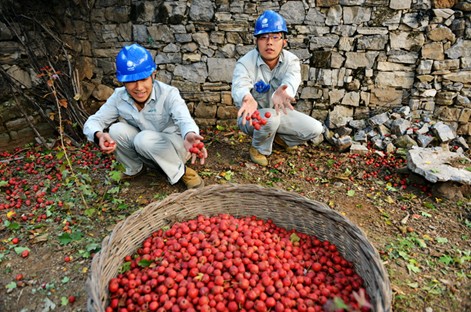 家住村南的贾策清老人今年已86岁高龄,跟老伴一起生活。他家院内的山楂树每年收成都很好,但由于交通不便,运输成了大难题。供电所在了解这一情况后,帮助联系销路。如今正赶上收获季节,山楂结满树梢,大家围着山楂树,纷纷打起山楂来。不一会儿,红红的果子落了一地,众人开始动手捡拾,半小时的劳动过后,山楂装满了三口袋,老人微红的脸上也晕开了笑意。