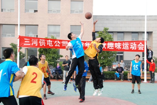 10月18日下午1:30分,国网冀北三河市供电有限公司2013年金秋趣味运动会正式拉开帷幕。此次运动会有盲人摸象、三人四足、心心相印、心手相连、乒乓球、羽毛球、篮球争霸赛等七个趣味项目。