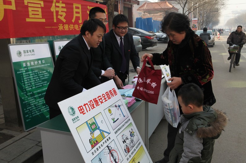 “尊敬的用电客户,冬季天干物燥,为了保证用电安全,请不要在电力设施附近焚烧秸秆,请不要将柴草、秸秆堆放在电力线路下或变压器房周围,以免发生火灾……使用临时用电请务必到电力部门进行审批并加装漏电保护器……”近日,国网承德县供电公司三沟供电所正在为赶集的农民宣传电力设施保护相关知识。