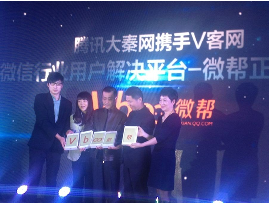 2013年11月29日,微信行业用户解决平台——“微帮”项目正式启动,这是V客网与腾讯大秦网强强联合,结合各自的平台优势、技术力量和产品性能,创立出的一个新产品。文化创意电商平台V客网长期以来一直以网站为载体聚集文化创意人才,致力于小微企业的创意服务支持,同时孵化V客们实现在此中实现其专业价值;而腾讯大秦网作为陕西用户最广众的区域门户网站,其明星产品微信在大家生活中的应用广泛,也有越来越多的企业瞄准微信这一渠道,向新的蓝海市场进发。