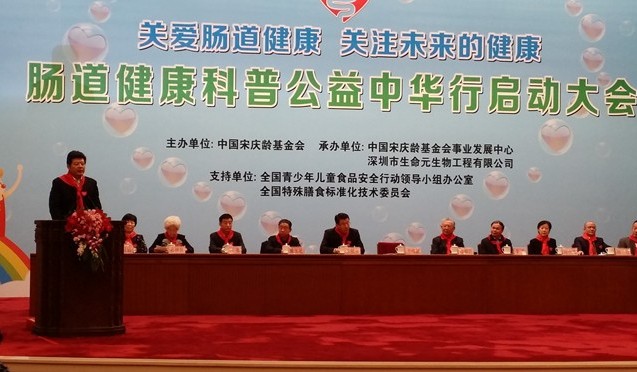 全国青少年儿童食品安全行动领导小组秘书长、中国宋庆龄基金会事业发展中心主任陈月仙在启动仪式上宣读了倡议书,宣布了项目委员会及专家委员会的组成人员名单,并将“关爱肠道健康,关注未来的健康——肠道健康科普公益中华行”大旗,授予了该项目负责人、深圳市生命元生物工程有限公司副总裁王璐,这也标志着项目委员会接过了“关注儿童微生态、助力健康公益”的使命。