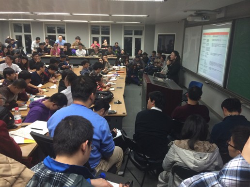 (图2,课后赵黎女士受到北大学子的热情反馈)