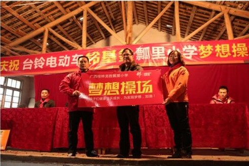 爱心需要代代相传。由于龙胜县是国家级贫困县,现有的教育资源难以满足学生的需求,孩子们上体育课还没有操场,只能在泥草地里上体育课,很是揪心。在这所具有爱心传统的山区小学里,爱心需要接力,具有高度社会责任心的台铃人,在了解到瓢里小学的困难后,立即伸出援手,从台铃“铃基金”中拨款52000元,捐建台铃瓢里“梦想操场”,奉献爱心。