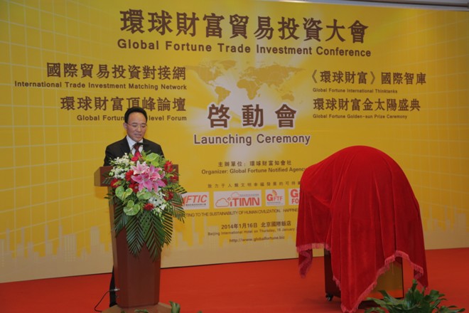 北京讯(李深根):由幸福联盟旗下的环球财富知会社主办的“智能提高效益 绿色保障腾飞”启动仪式于2014年1月16日在北京举行。这次仪式正式启动了“环球财富贸易投资大会”、“国际贸易投资对接网”、“环球财富顶峰论坛”、“环球财富金太阳盛典”以及《环球财富》国际智库五个项目。