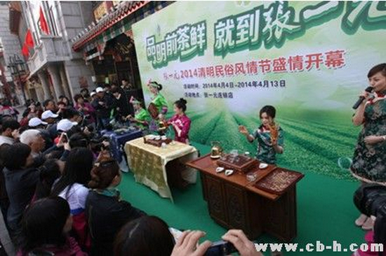 阳春四月,春桃吐蕊,鸟语花香,以“品明前茶鲜 就到张一元”为主题的张一元2014清明民俗风情节于4月4日正式开幕,活动截至4月13日,为期十天。