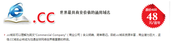类似上述这类捷报还将从四面八方涌来,市场对.cc域名的饥渴也将催生交易市场的繁荣。不过,.cc域名动辄400-500元/年的支出难免叫人顾虑,国内顶级的互联网基础应用服务商——新网为了将.cc域名进一步推向大众化,2013年5月份扔出了全球最低价28元,即便现在长达6个月的活动时间已经结束,但价格并未回到活动开始前的320元,而是48元,国内其他注册商也纷纷将.cc域名原来动辄几百元的注册家纷纷猛降,这证明.cc域名的市场认知基本上已经形成。