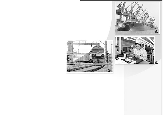 图①:2014年5月5日,多艘远洋货轮在江苏省连云港港赣榆港区码头卸载货物。江苏连云港港进一步加快现代物流网络建设,提升丝绸之路经济带开放层次,打造出海大通道。