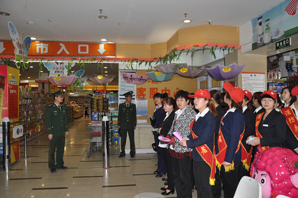 此次演练,火情设定为雄关商厦一楼超市发生火情,一楼大门无法打开,人员必须从二楼安全出口撤离。随后演练开始,当该工作人员发现着火后,立即通过监控室,并引导在职全体员工们进行疏散。监控室值班人员接到报警电话后,迅速起动应急预案,立即开启应急广播通知各楼层实施人员疏散,并通知预案设立的疏散引导组和通信联络组,同时拨打“119”火警电警电话报告火警。各楼工作人员立即通过紧急疏散楼梯有秩序的疏散人群,并由楼底层引导人员指引疏散到室外安全地带;超市灭火救援行动小组快速启动该楼层防排烟系统、室内消火栓系统,实行排烟,接水带、水枪进行灭火;通信联络组按照任务分工,一边通过楼层监视器观看仓库火情和人员疏散情况,一边通过应急广播指导楼层人员疏散,并安慰员工不要惊慌失措、保持冷静,按照公司疏散疏导人员指引的路线进行疏散。10分钟后,超市起火部位的浓烟尽散,初起火灾得到成功处置,全体人员全部疏散到指定地点,演练圆满结束。
