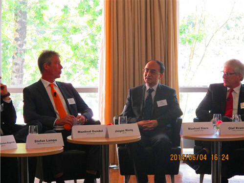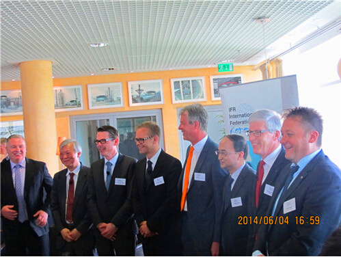 由IFR国际机器人联合会主办的慕尼黑国际机器人展Automatic以及IFR CEO 圆桌会议于6月4日在慕尼黑展览馆成功召开,埃斯顿机器人工程有限公司成为本次会议唯一一家受邀参加的中国机器人生产商,与来自世界四大机器人生产商代表:ABB机器人副总经理Stefan Lampa,KUKA机器人总裁Manfred Gundel,发那科机器人欧洲区总裁Olaf Gehrels,安川公司欧洲区总裁Manfred Stern,以及两位机器人用户代表:富士康集团副总裁Dr. Chia P. Day 和宝马公司高级经理Dr. Stefan-Markus Baginski,旨在交流机器人行业面临的最新的机遇与挑战。