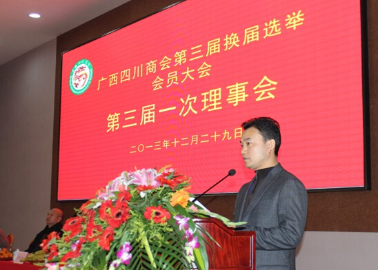南宁成都商会会长韩一和在广西四川商会第三届选举大会上发言