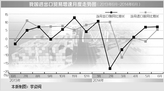 一是进出口呈现逐步回暖态势。5月份我国外贸进出口同比增速由4月份的下降1.4%逆转为增长1.5%,并在6月份进一步扩大至5.6%。