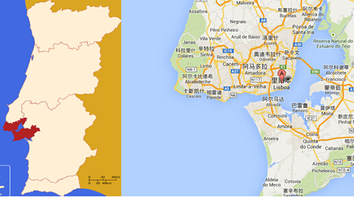 左图红色的部分为里斯本大区,由中间的特茹河分开,基本上可以分为上下两部分,放大如右图,位于“上半部分”(里斯本、卡斯卡伊斯、新特拉等地)的房产基本上价值较高,下半部分相差很多,所以您只要记住,从里斯本市区,过了425大桥或者达伽马大桥的房产,都不会很贵!