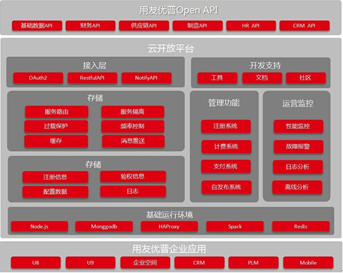 用友优普此次推出的企业级OPEN API开放平台服务,将逐渐发布数百个ERP的API。一方面保证企业接入更多优秀的第三方企业互联网应用服务,例如企业网银、企业差旅管理、企业薪酬、企业招聘、企业采购比价、企业社会化营销、企业网络广告等;另一方面也让企业很容易地使用各种第三方企业互联网应用,实现企业内外数据的标准、方便、高效交换,使企业原有的数据资源实现更大的商业价值。