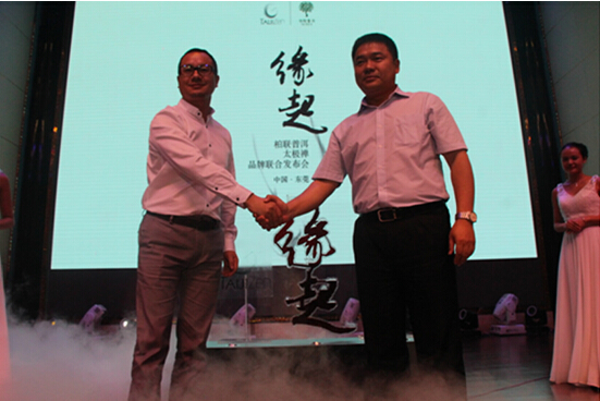 (柏联普洱总经理谢金汶与太极禅CEO黄毅启动联合仪式)