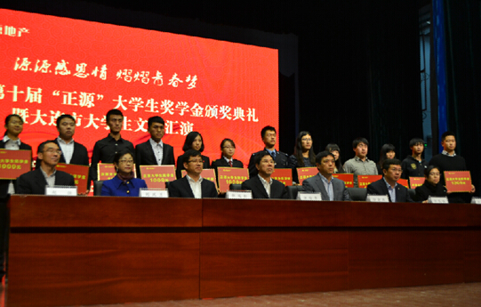 11月19日,由共青团大连市委员会、大连市希望工程办公室、大连市青少年发展基金会和正源房地产开发有限公司共同主办,共青团大连海事大学委员会承办的“源源感恩情 熠熠青春梦”2014第十届“正源”大学生奖学金颁奖典礼暨大连市大学生文艺汇演在大连海事大学新大学生活动中心报告厅举行。
