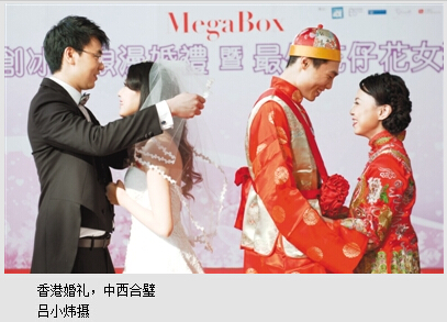 2014年香港有5.5万对新人注册结婚,结婚消费市场高达172亿元。数据显示,婚礼支出中的最大宗是酒席,每场婚礼酒席的平均消费为15.9万元,其次为戒指及首饰,平均消费约5.1万元;排名第三、第四的为蜜月旅行和婚纱摄影。因为环保观念的普及,虽然酒席支出不减,但“无翅婚宴”数逐年上升,今年首次突破一半达到52%。