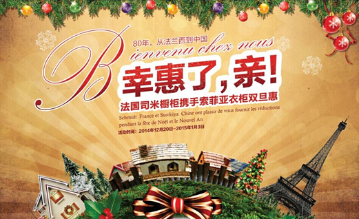 SCHMIDT司米橱柜源于1934,是法国第一橱柜品牌。80年,从法兰西到中国,一直秉承“领先每一个细节”的品牌理念,致力于将“便捷、快乐、高品质”的家居生活理念带进每家每户。现正值双旦岁末疯狂之际,继“9.21司米首航风暴席卷六城”大型促销活动之后,司米橱柜再次来袭,在双旦这个特别的日子,携手索菲亚衣柜举行“幸惠了,亲!”大型惠民促销活动,在这个不一样的圣诞节,带给你不一样的法国浪漫,在这个不一样的元旦节,带给你不一样的惊喜,暖心暖人,这个冬天不太冷,司米橱柜陪你过暖冬。热情与火爆交融,只因带来的不只是钜惠,更是心意!这个冬天,全国有着不一样的温暖!