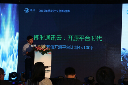 图注:环信在“首届移动社交创新价值峰会”上宣布《环信开源平台计划》