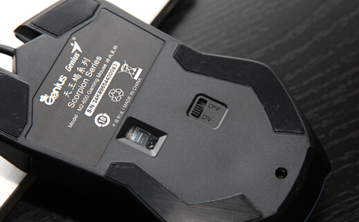 鼠标的右侧裙采用对称处理,同样使用了粒子面材的防滑橡胶,去掉几乎用不上的右侧键,降低误操几率的同时可以让小拇指舒服的贴在侧裙上。从这些细节,我们可以看出Genius对产品研发是极为严谨的。