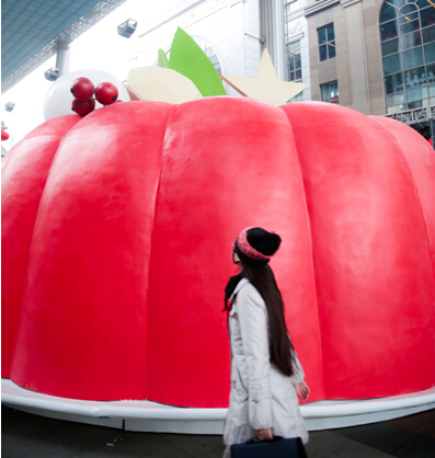 周五的世贸天阶人流涌动,白天空旷的广场此时被各种人群占据,纷纷与身边的红色巨型蛋糕合影。巨型蛋糕直径达9米,高近8米,放置在世贸天阶的广场。好利来本次活动也在宣告,正式进军电商市场。