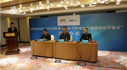 2015年2月3日,中国国际贸易促进委员会正式授予Ninebot平衡车系列产品为“2015年意大利米兰世博会中国馆指定平衡车”,同时授予纳恩博公司为“2015年意大利米兰世博会中国馆指定用品供应商”。宣告Ninebot作为中国平衡车产业唯一入驻品牌,向全世界展现中国智能短途交通行业的高速发展,为米兰世博会中国馆增添一道靓丽风景。