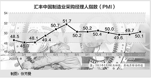 在2月份春节放假的情况下,2月汇丰中国制造业PMI的回升略超过市场预期,此前市场曾预期会小幅下降。对此,中国民生银行首席研究员温彬指出,2月份汇丰制造业PMI初值升至50.1,回升到“荣枯线”之上,超出市场预期。其中产出、新订单和采购库存指标回升推高PMI,反映春节之后,随着项目陆续开工,内需有所增加,企业开始补库存、增加生产,但新出口订单为47.1,反映全球经济复苏分化背景下,外需仍不容乐观。