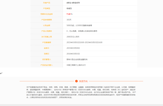 登录进入之后,可以看到产品详情。这款产品收益率7.1%,投资期限365天,属于高收益、较长期限的投资产品。同等情况下,百度百赚365天的定期产品收益率只有6.5%;网易理财长期主推的定活保168天收益率6.3%。在风险控制较低的前提下,如果闲钱不是急用,这款产品是个不错的选择。