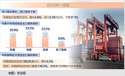 海关调查显示,2月份,中国外贸出口先导指数环比回升1.0,但3月份又较2月份下滑1.4。“这表明今年二季度我国出口向好仍存在不确定性。”黄颂平说,尽管去年下半年以来国际大宗商品价格持续走低,我国外贸企业原材料成本有所下降,但与此同时,劳动力、融资、汇率、环保等成本依然居高不下。我们要正确看待外贸发展新常态。