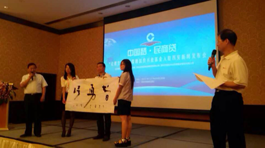 国投兴业基金慈善会主席丶陕西省民间招商协会名誉会长丶陕西皇城书画研究院院长陈聆向大会致辞并阐述了民商贷如何产生及民商贷的五大亮点,特别是民商贷接地气,为党分忧,服务地方政府,民商贷接人气,为投资人增加信用。