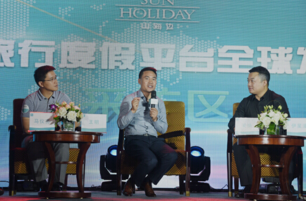发布会现场, 60家媒体、多位行业权威、30多家顶级合作商和多位优质客户共同见证了山海边的起航时刻。中央电视台著名主持人阿丘老师、中国旅游局信息化主任蔡家成博士与董事长王明先生共同探讨旅行新趋势。山海边执行总裁姜楠先生和产品总监伊星潼先生依次发表精彩演说,为现场观众展现了山海边的优质产品和贴心服务。