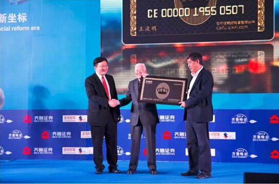 唐宁为美国前总统吉米•卡特颁发宜信财富首张贵宾黑卡