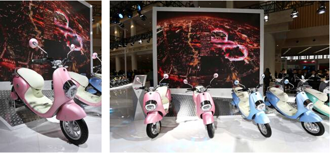 在精心打造的品牌空间里,爱玛电动车推出17款共88台新车。并举办了主打车款“麦”的新车发布会。集行业最新技术成果为一身,“麦”注定是全场焦点。大气流畅的造型,高智能的指纹启动与无级变速,可利用手机app设防,解锁,一键启动。一键紧急修复出现的故障,省时省心。(部分功能仅在高配版中配备)此款新品代表了爱玛电动车在技术领先的一大跃进。