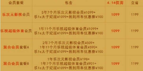 第二,乐1s太子妃版四种套餐供选择,无论哪种立省1199元!其中包括乐次元影视会员套餐、乐视超级体育会员套餐以及两种混合会员套餐。在这里笔者推荐各位混合会员套餐,既可以享受移动影视会员专属权益又可以享受超多VIP体育赛事,十分划算!