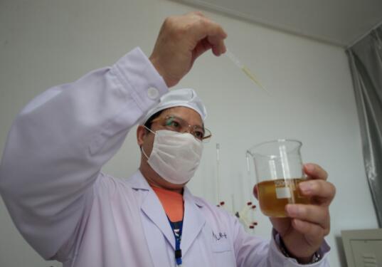礼米公司总工程师蔡杭芯在化验室精心调试产品