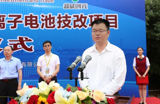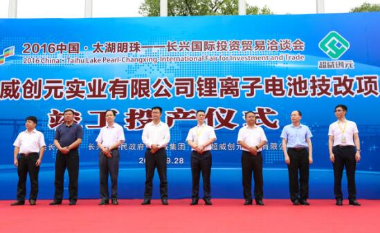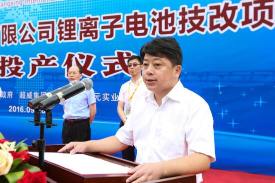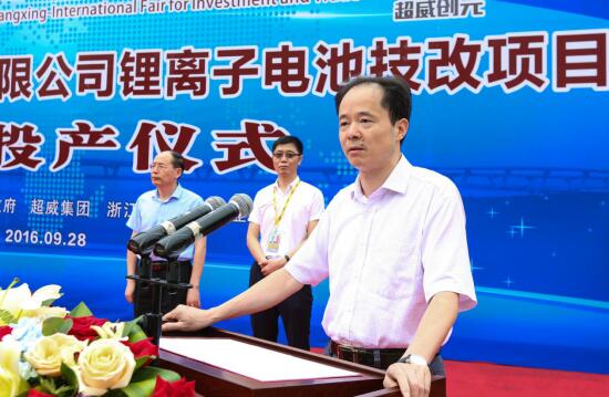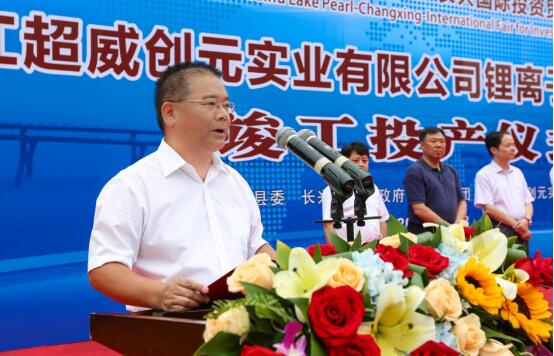 长兴县委常委、常务副县长高胜华在仪式上讲话,指出,超威创元锂离子电池技改项目,从研发、设计、开工到建设、竣工、投产,只用了短短15个月的时间,迈出了集团公司在新能源产业转型发展的关键一步,速度之快、效率之高、技术之先进令人叹服,值得大声叫好。他强调,长兴县牢牢把握新能源产业发展历史机遇,与2015年11月成功创建了画溪新能源小镇。当前,小镇的各项基础设施、产业项目等建设正在如火如荼开展。此次项目竣工投产,必将引领带动一批标杆型企业、高端人才技术向画溪新能源小镇汇聚,掀起特色小镇项目建设新高潮。他希望,超威集团以此次项目竣工投产为新的起点,开启新的征程,进一步强化创新,为打造百年企业和伟大公司夯实根基。