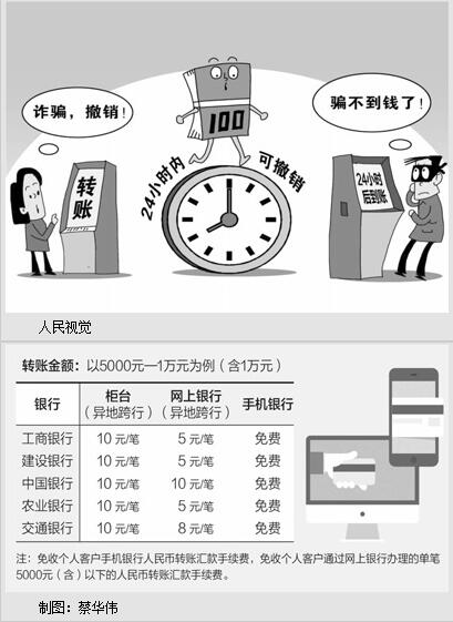 日前,中国人民银行发布通知,其中规定:自2016年12月1日起,除向本人同行账户转账外,个人通过自助柜员机转账的,发卡行在受理24小时后办理资金转账。在发卡行受理后24小时内,个人可以向发卡行申请撤销转账。此消息一出,不少人松了一口气:“发现被骗还能撤回来,早有这政策就好了!”“以后骗子想骗钱就难了。”