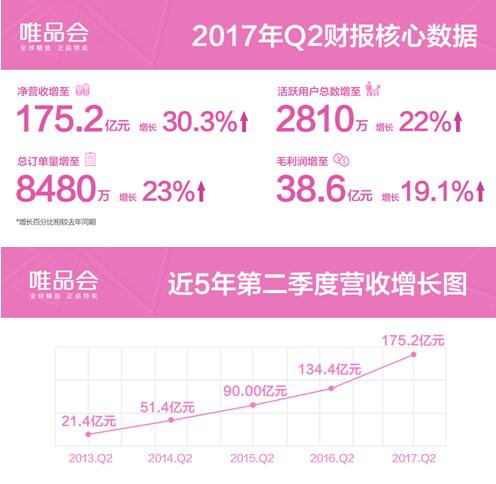 北京时间2017年8月17日,特卖电商唯品会(vip.com,NYSE:VIPS)公布了截至2017年6月30日未经审计的第二季度财务报告。财报显示,唯品会各项业务继续保持稳健发展,并以连续19个季度盈利的表现,刷新电商行业连续盈利纪录。